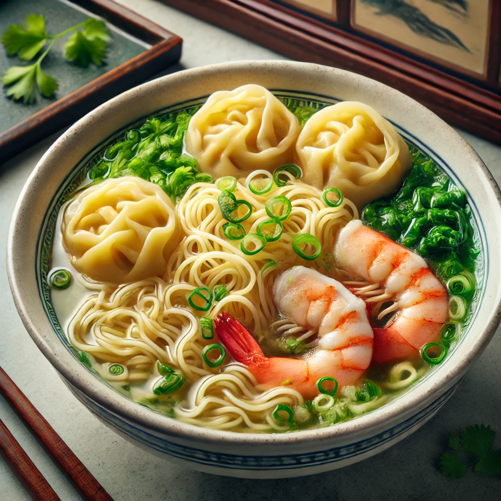 - 완탕면(雲吞麵) – 쫄깃한 면발과 새우 완탕이 조화로운 홍콩식 국수